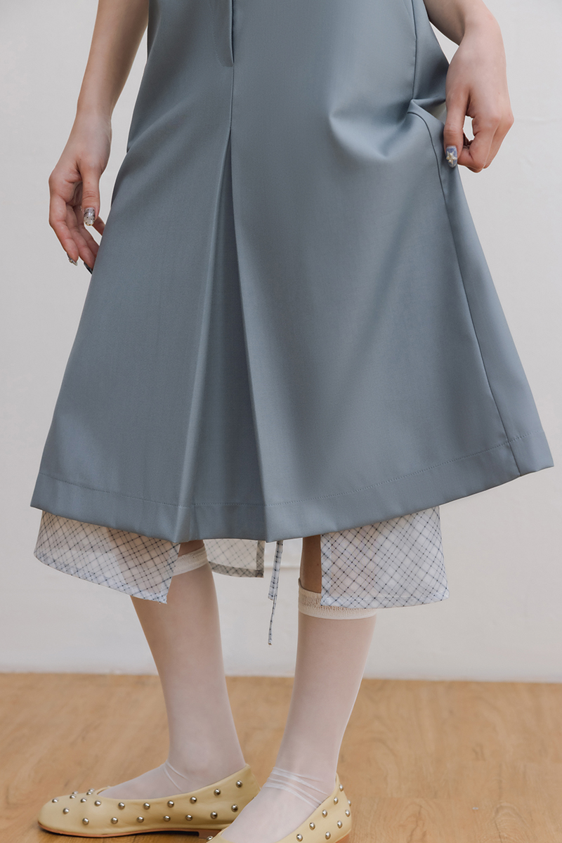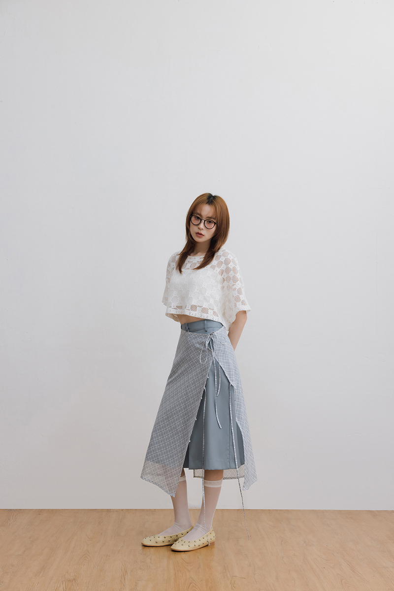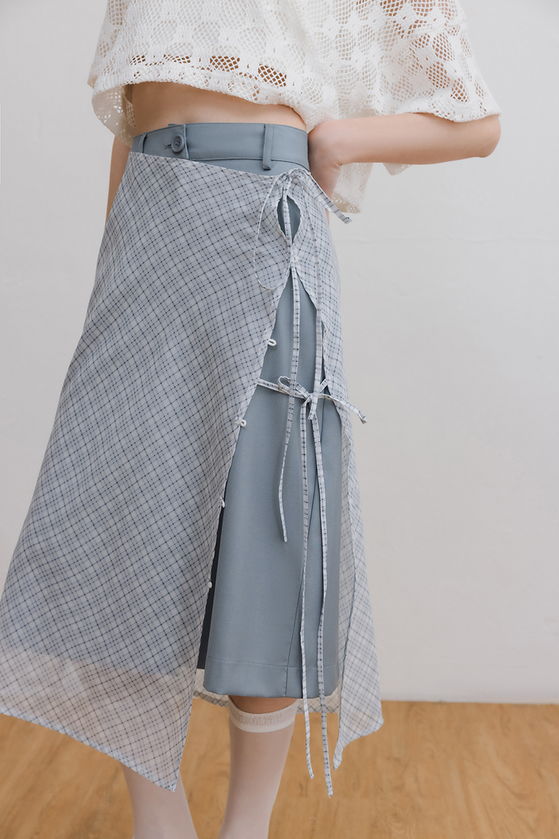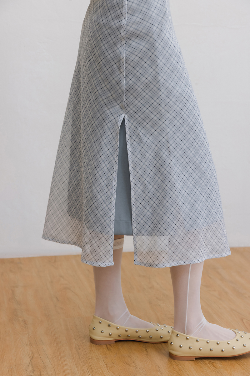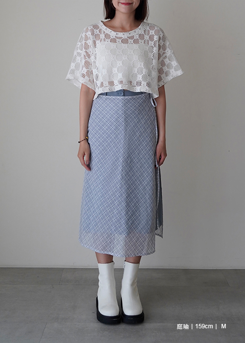 -搭配格紋透膚配外裙溫柔俐落