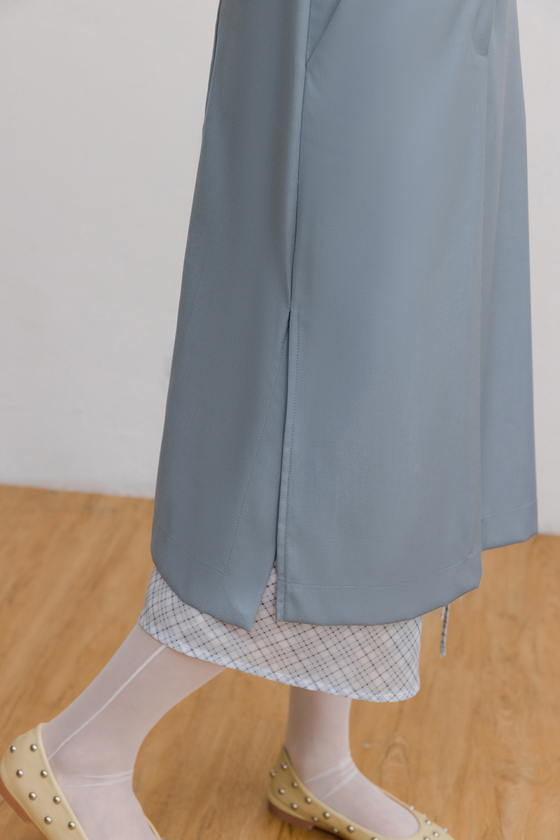 -前合褶與側開衩設計行走自在