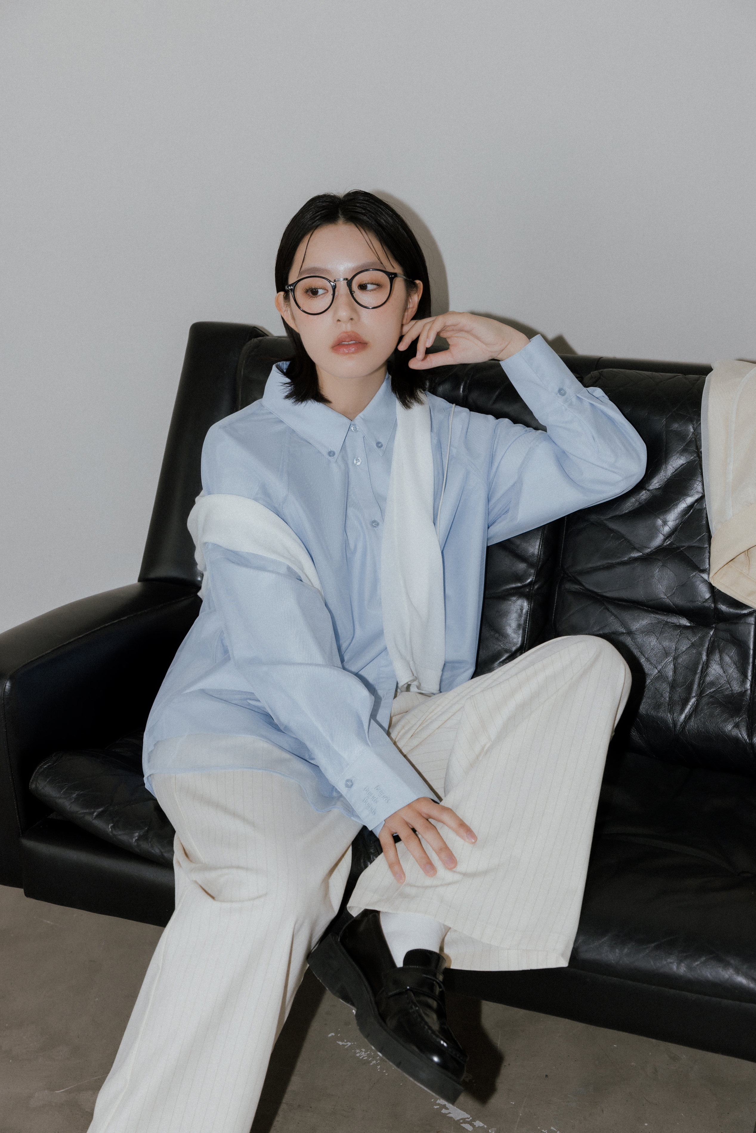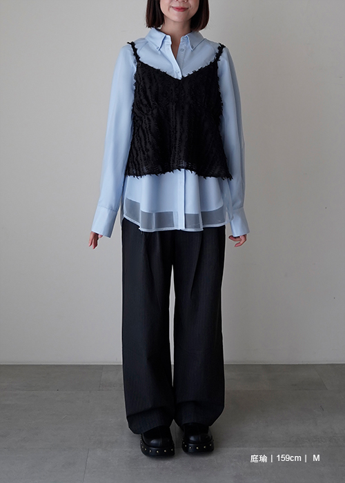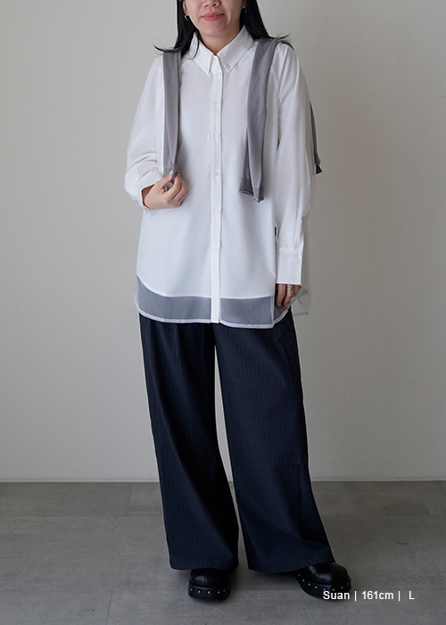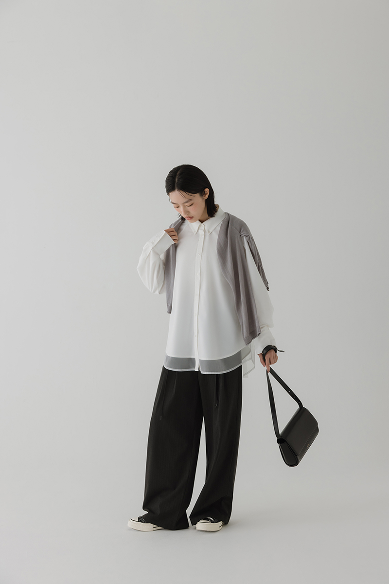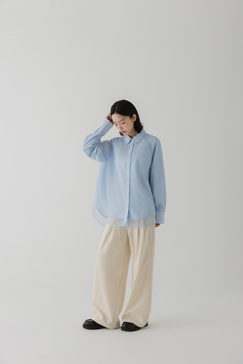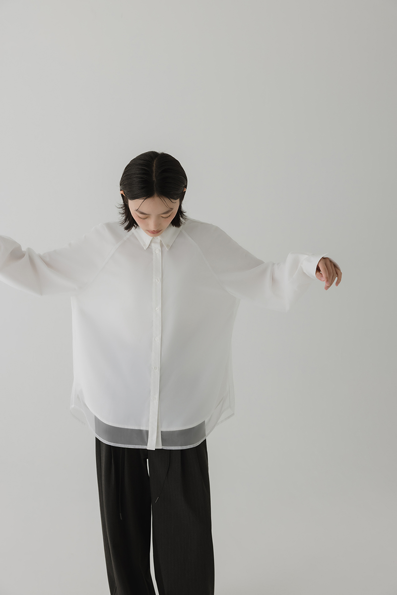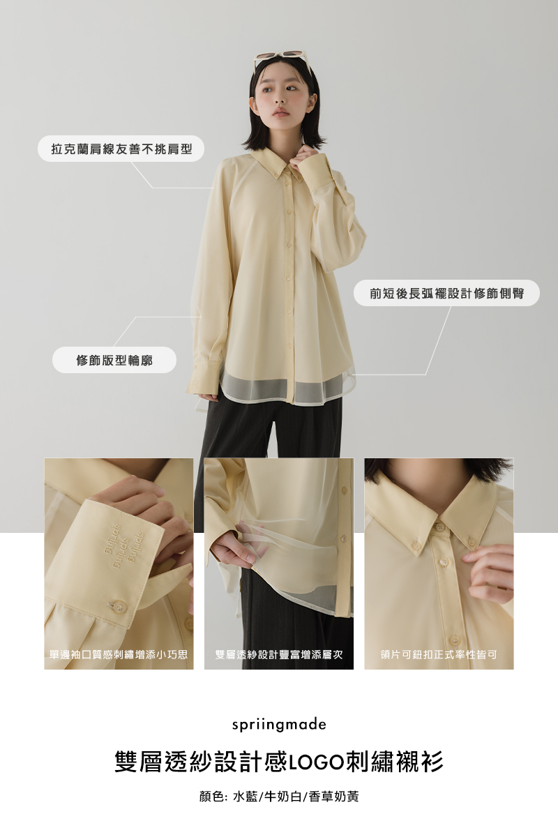 雙層透紗設計感LOGO刺繡襯衫