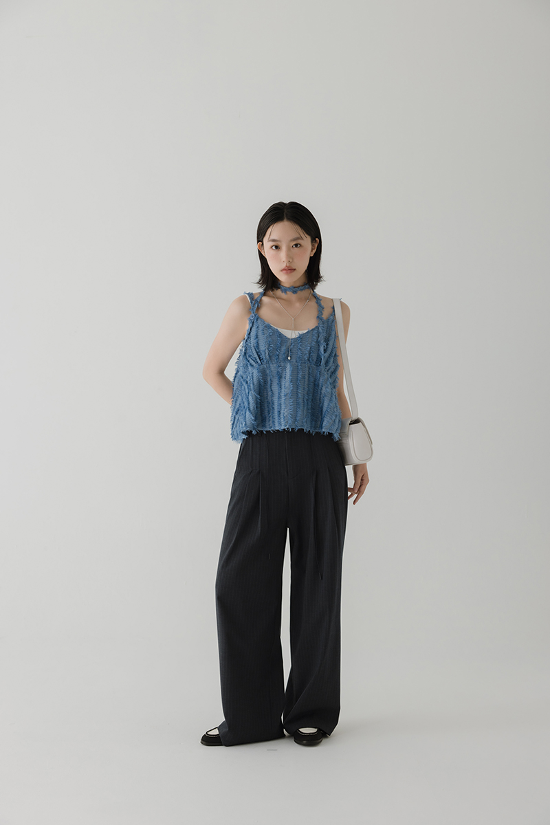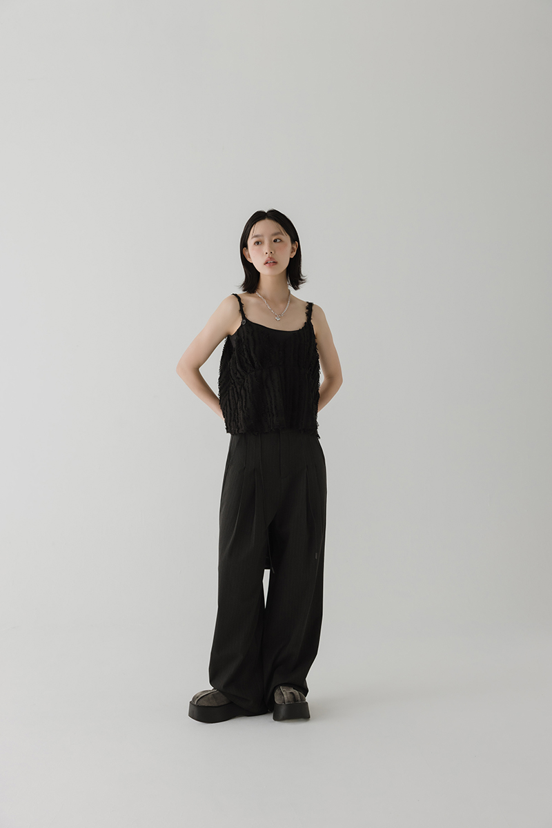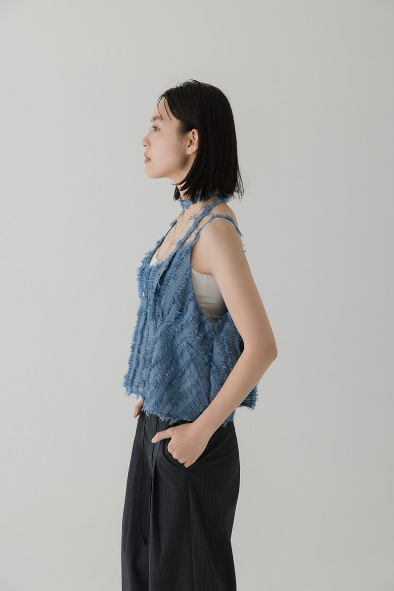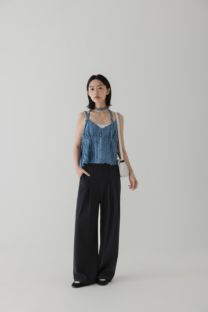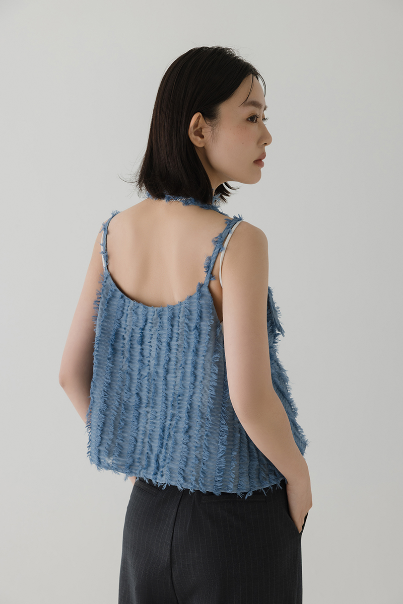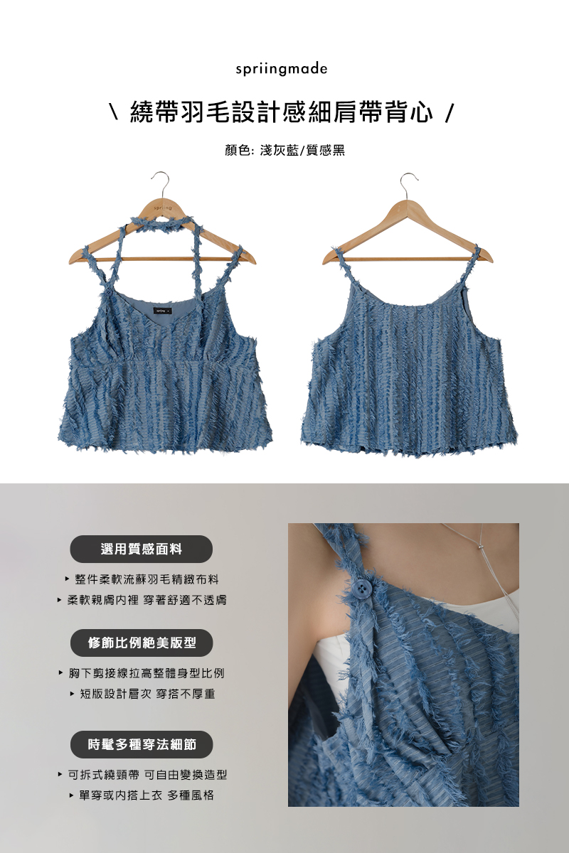 繞帶羽毛設計感細肩帶背心