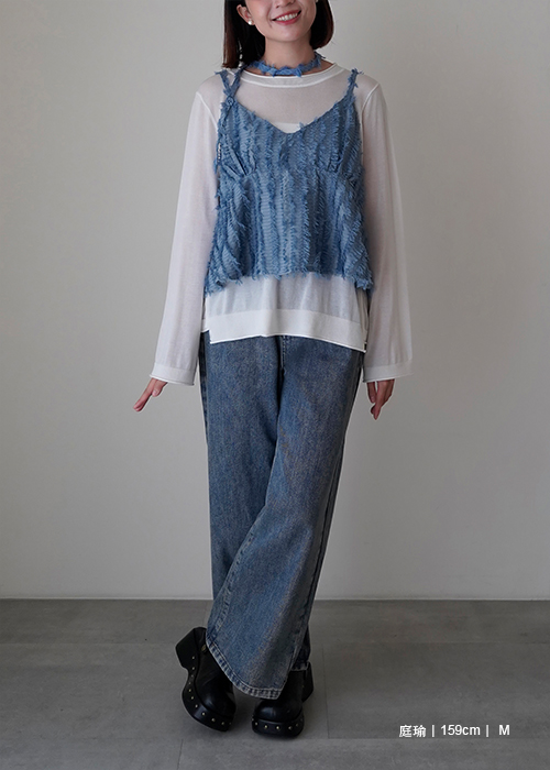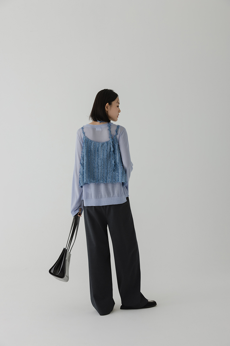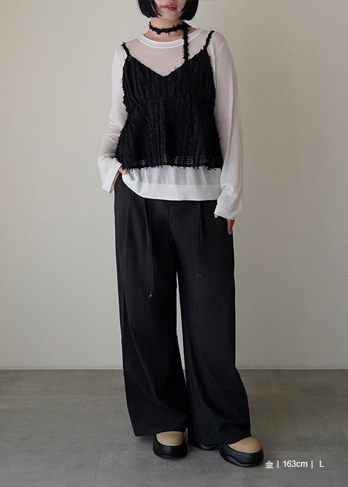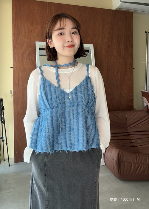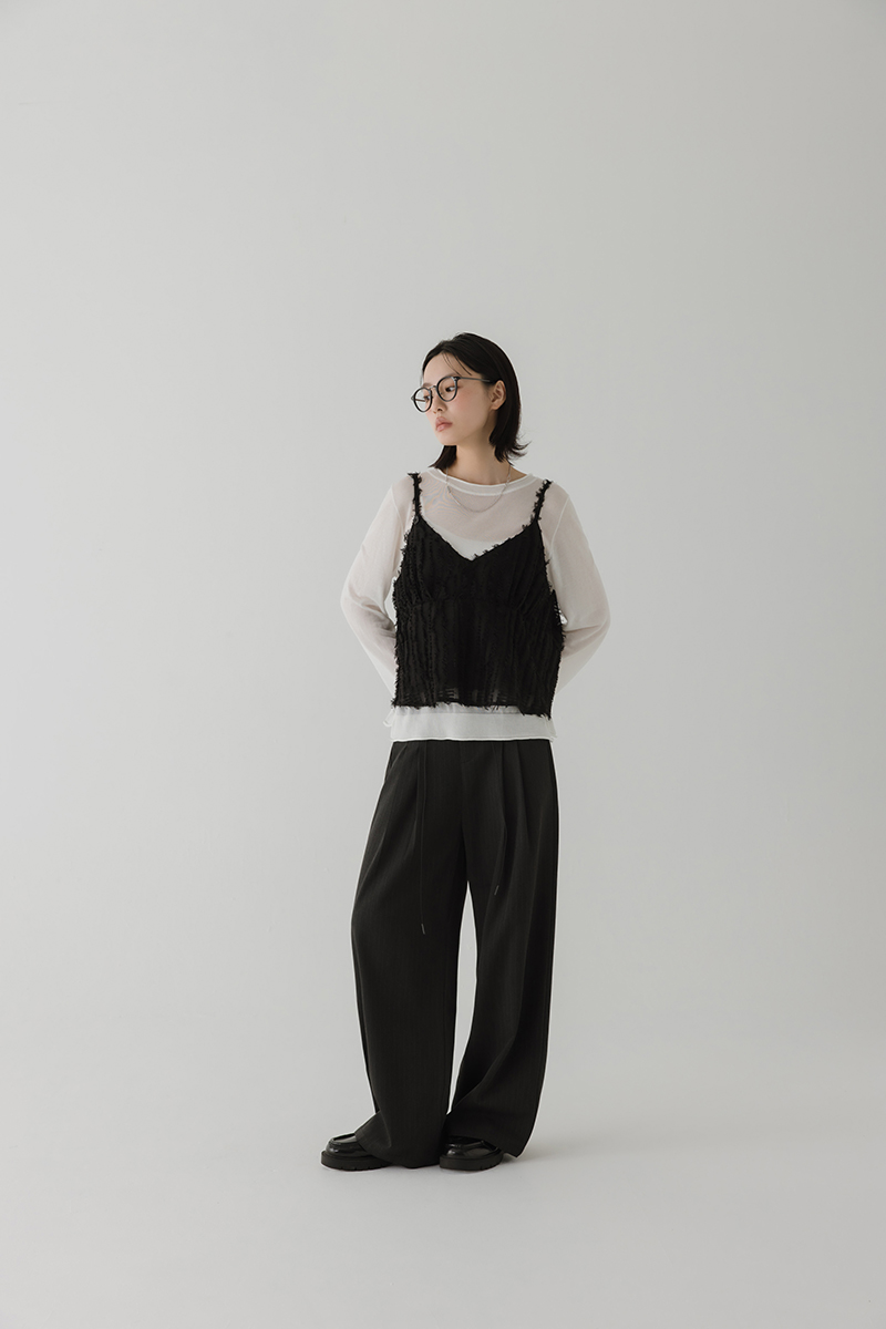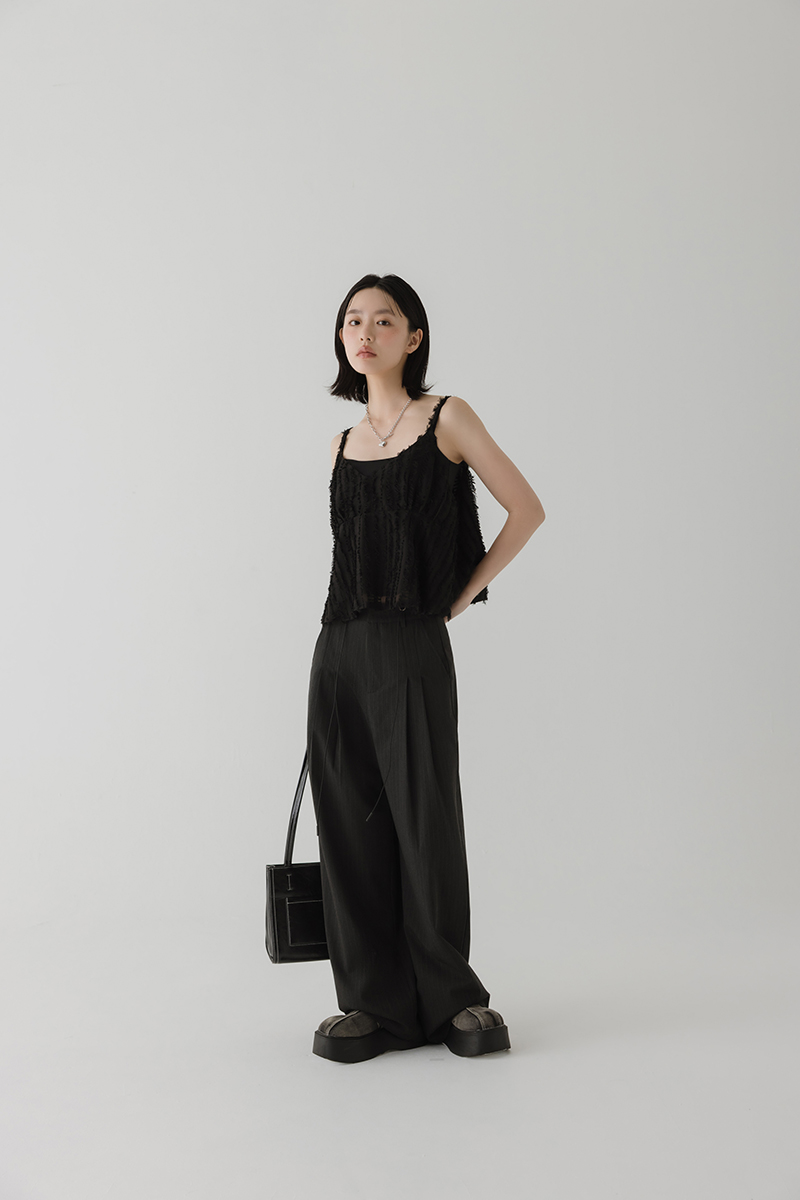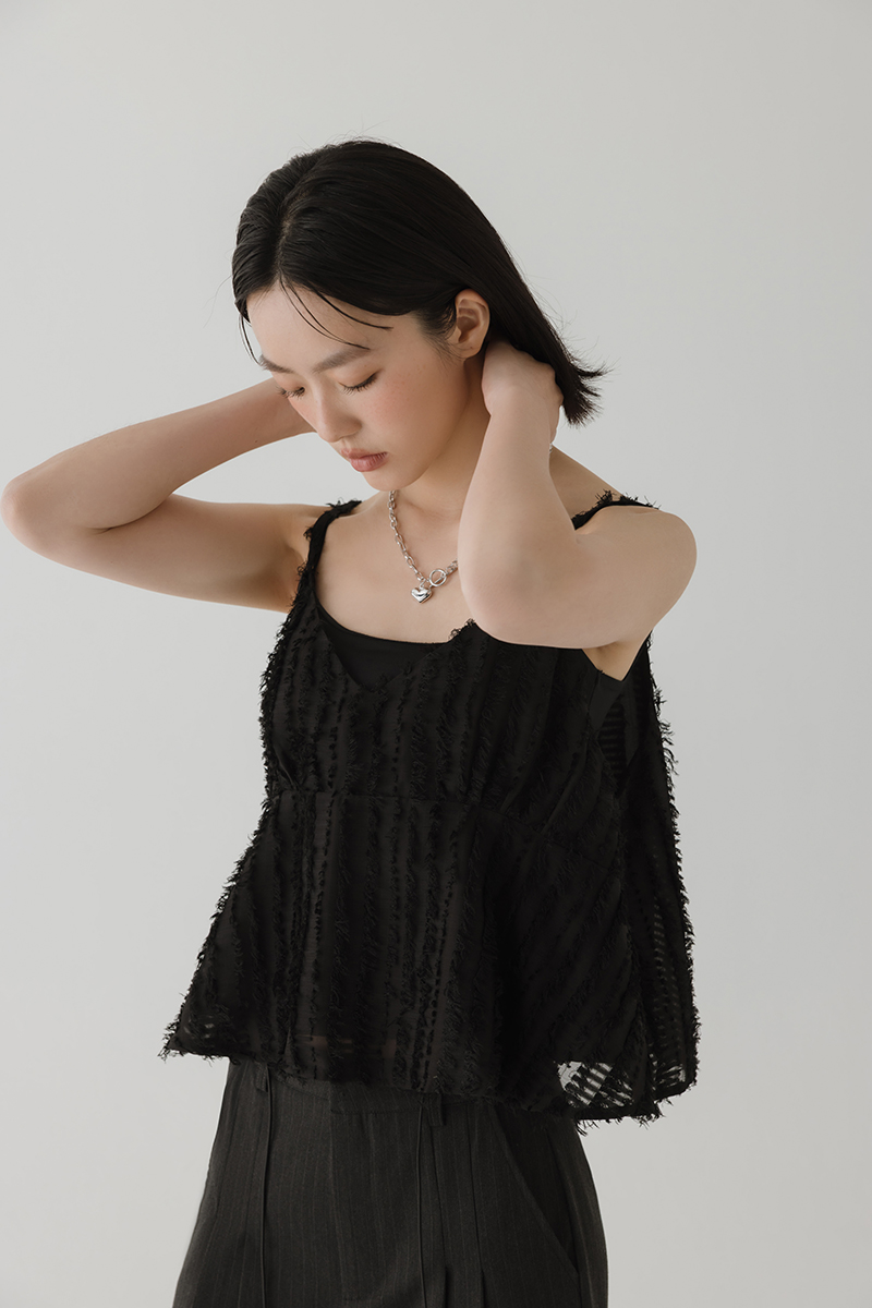 繞帶羽毛設計感細肩帶背心