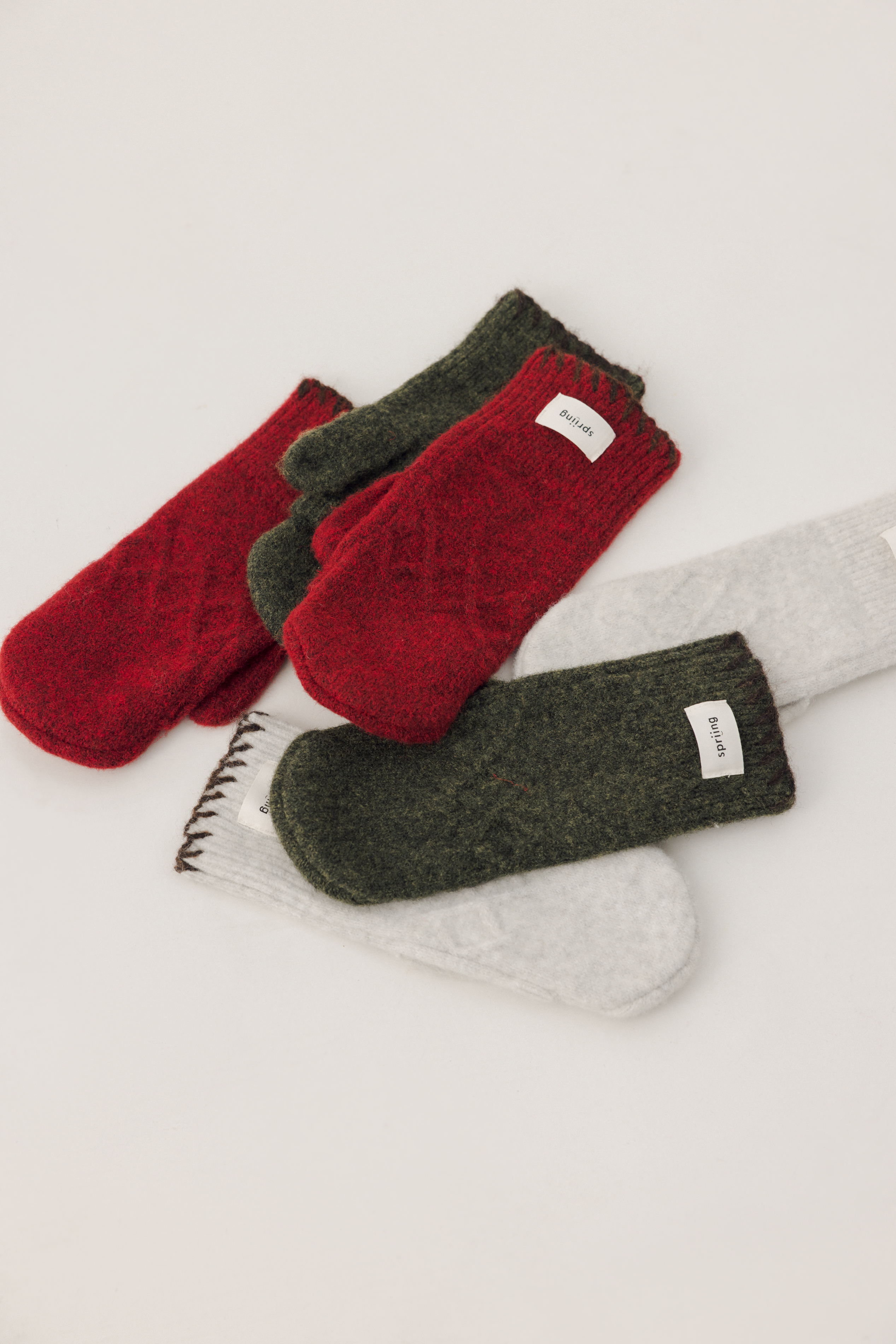 5%羊毛撞色縫線麻花手套