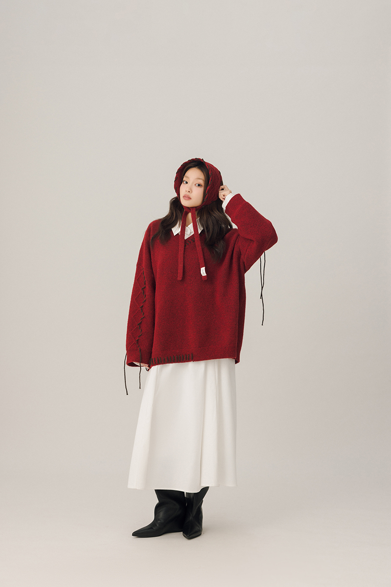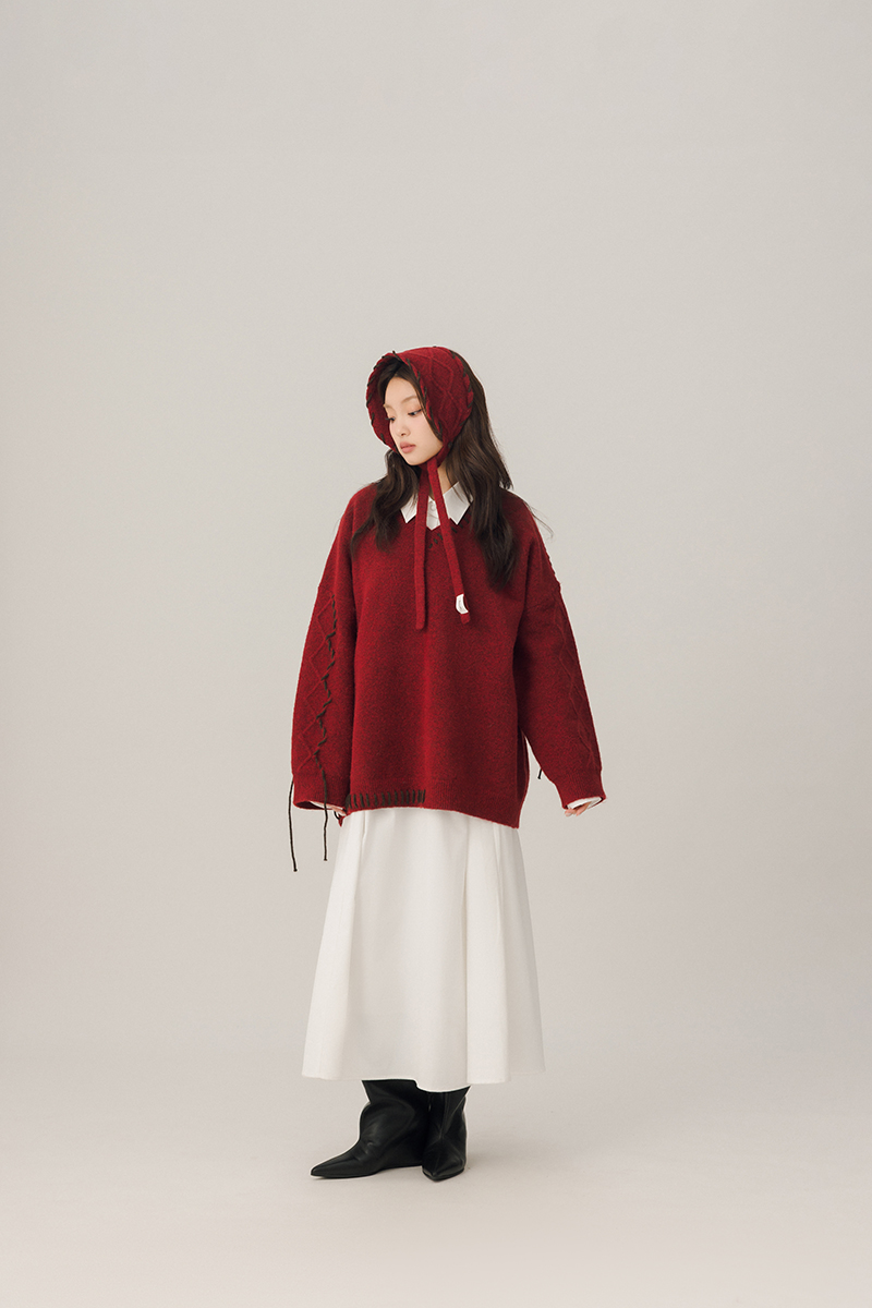 -袖側麻花菱格紋理帶出立體層次