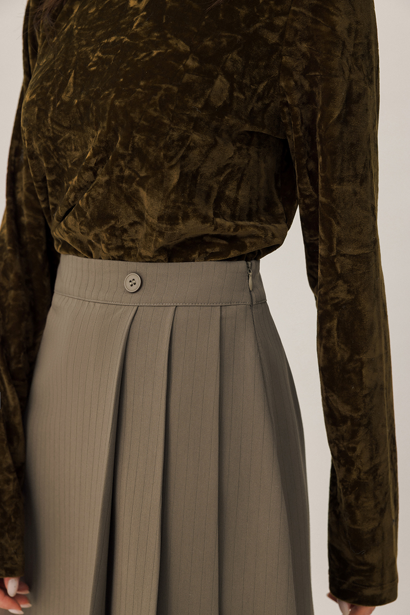 極修飾質感條紋西裝中長裙