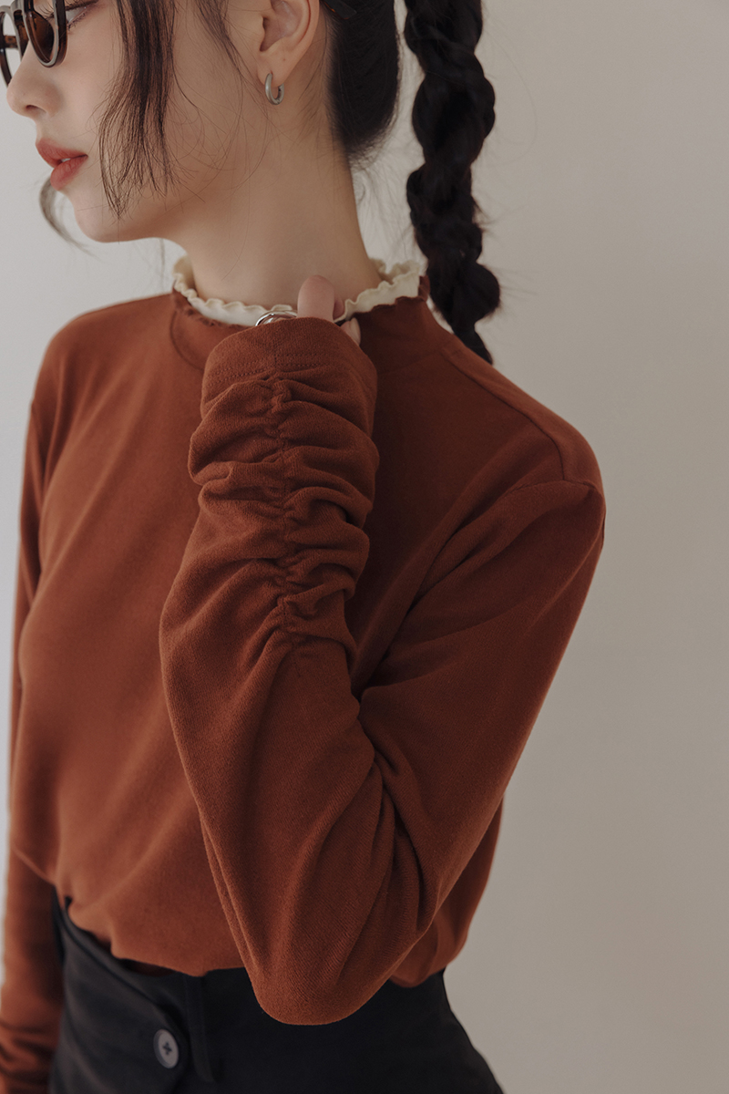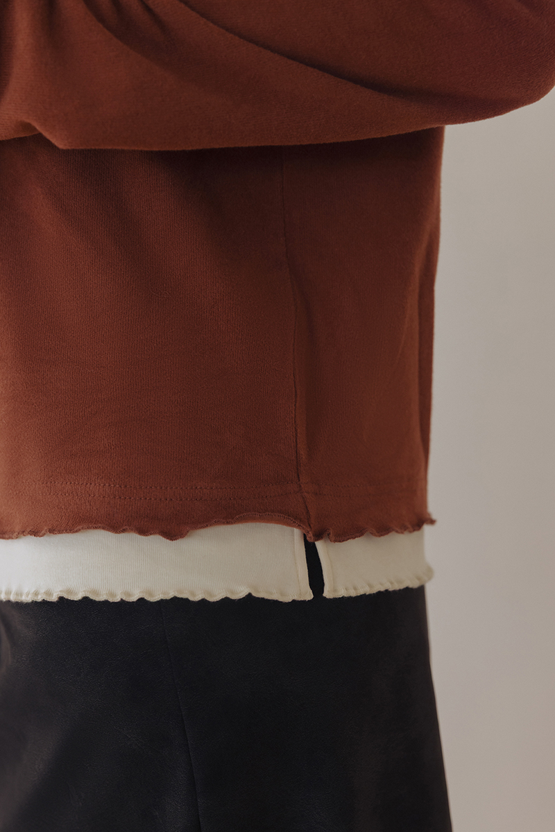 修身假兩件滾邊小高領保暖上衣