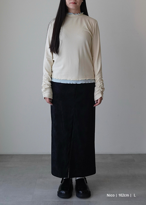 -兩側小開衩修飾腰臀線條