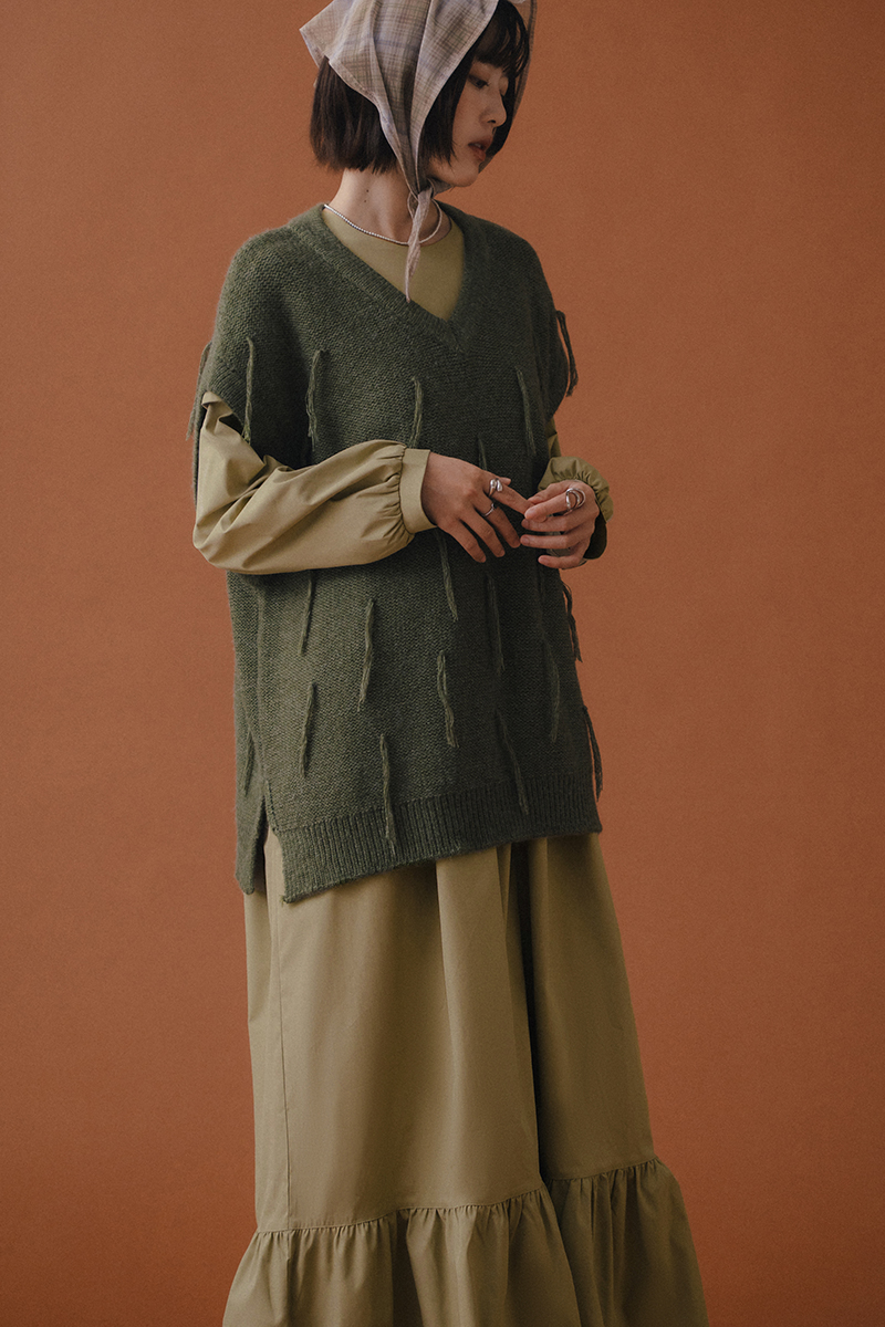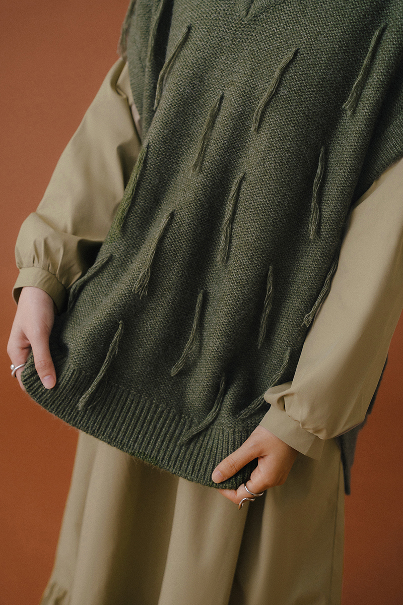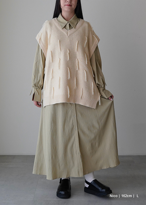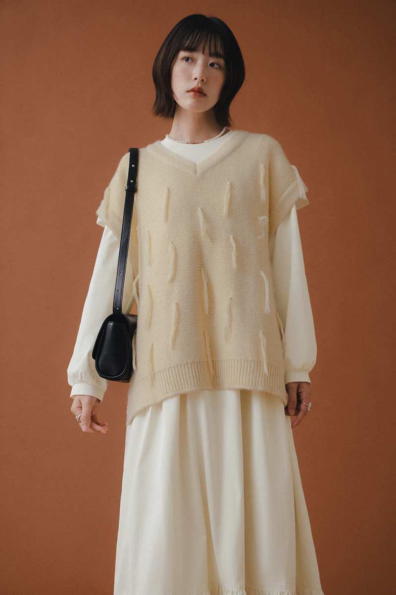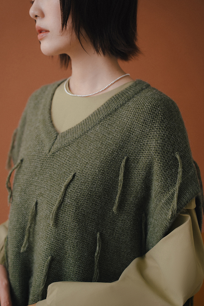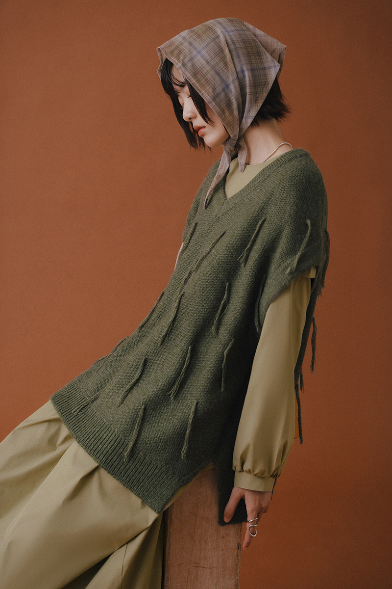 spriingmade x SENSE OF PLACE 流蘇織紋V領落肩背心