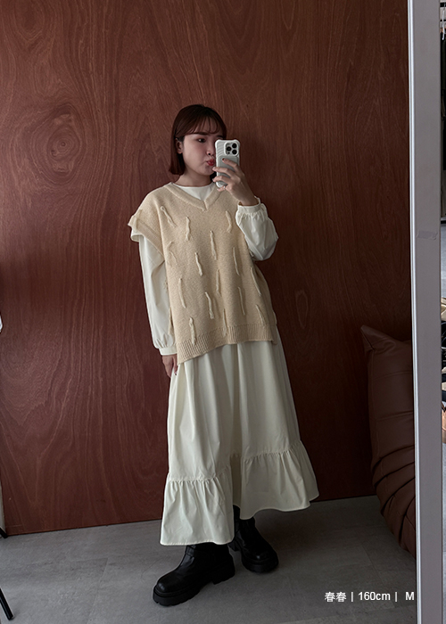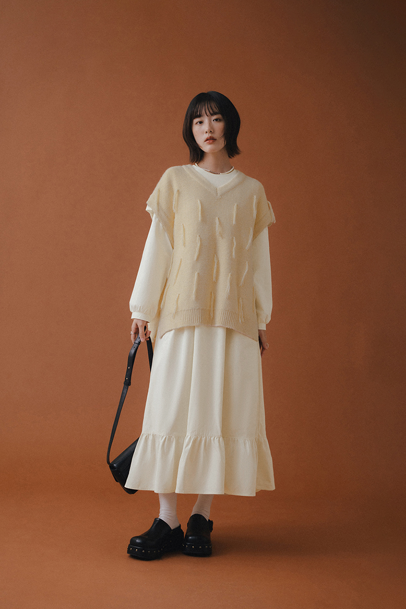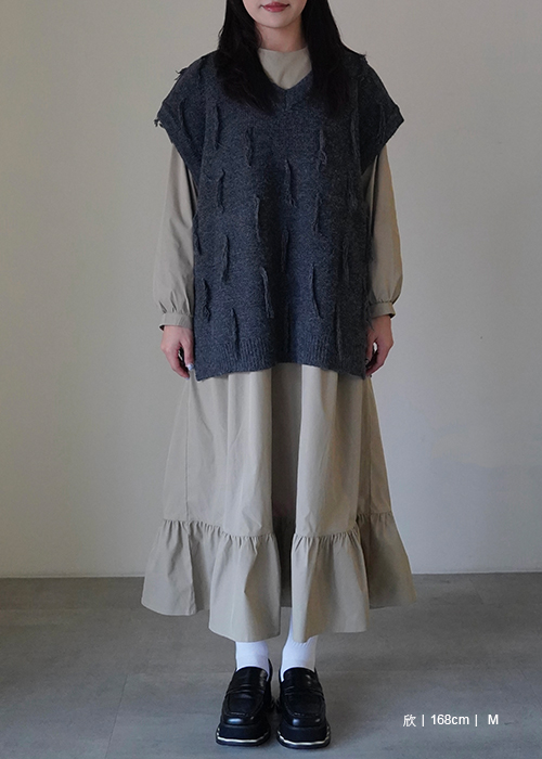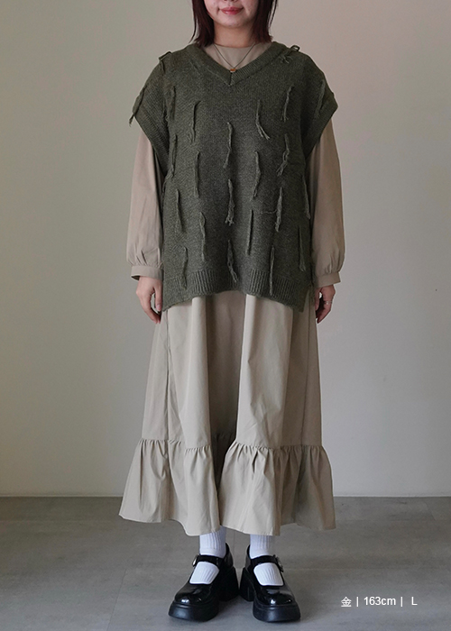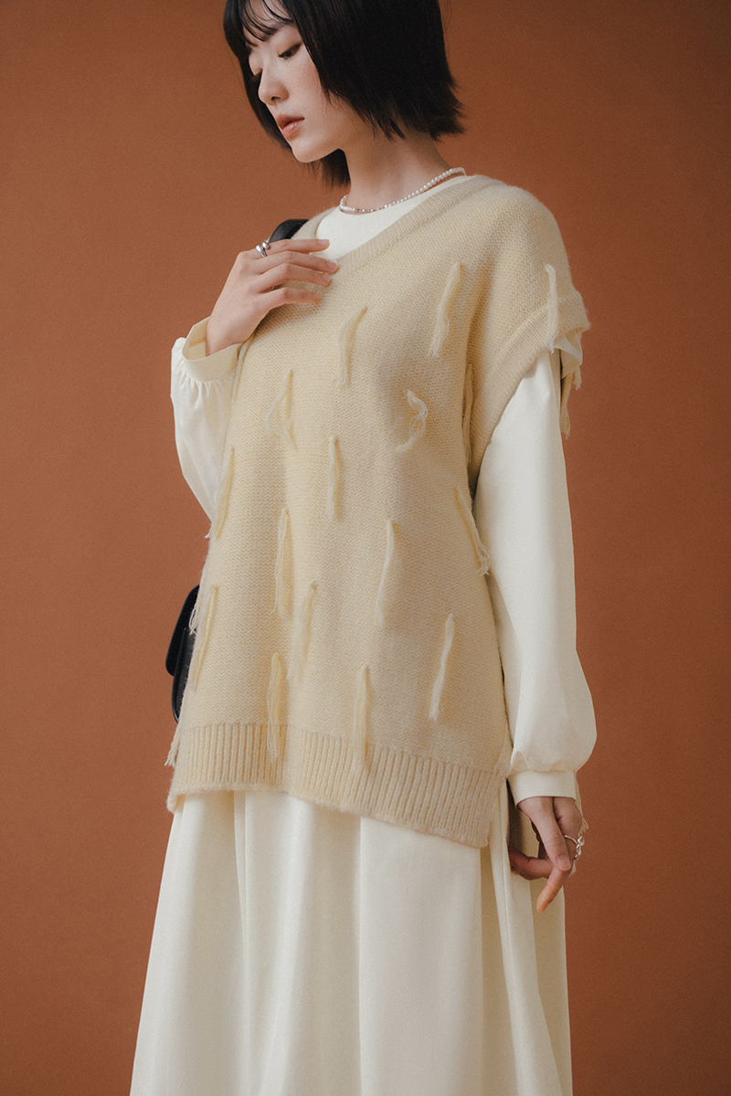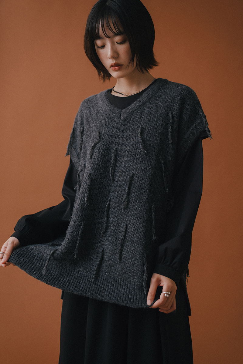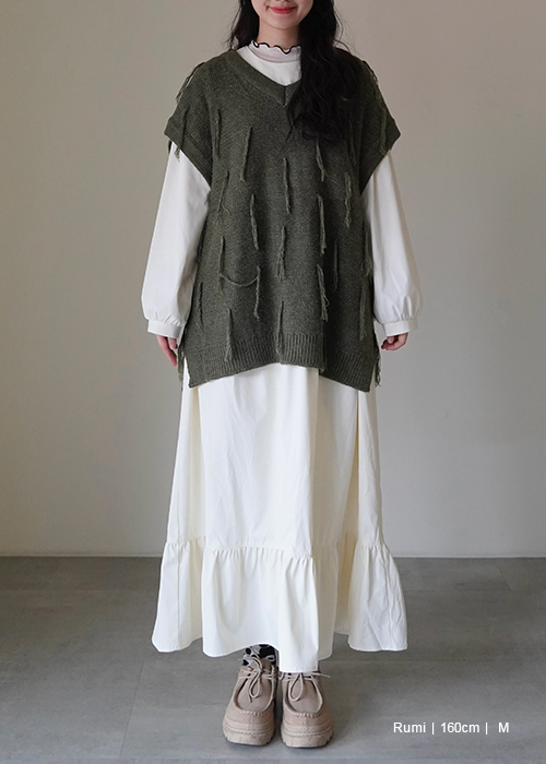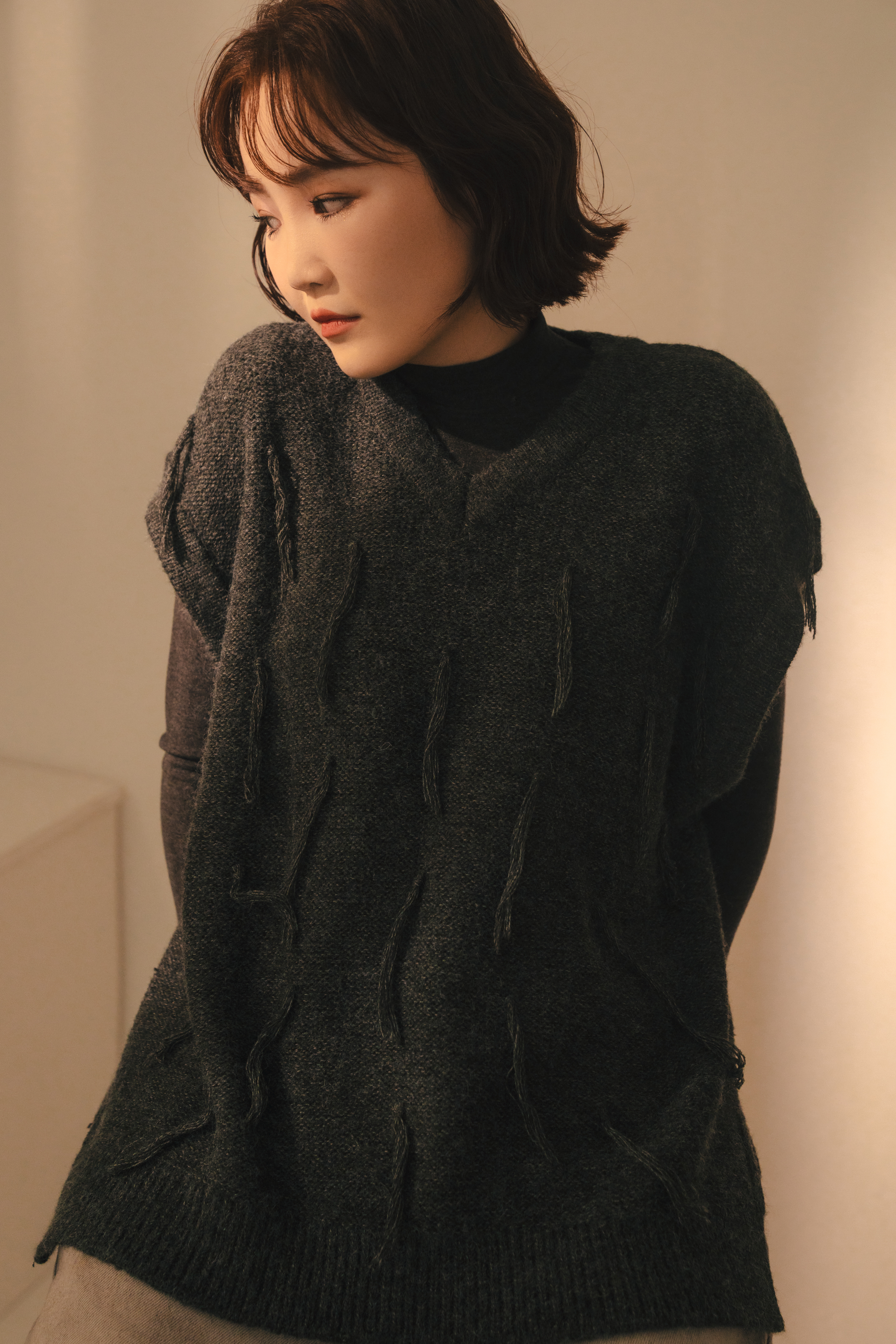 spriingmade x SENSE OF PLACE 流蘇織紋V領落肩背心