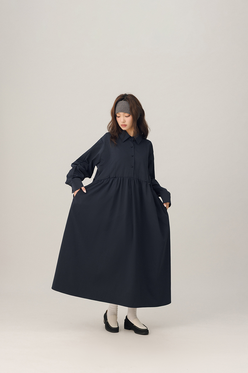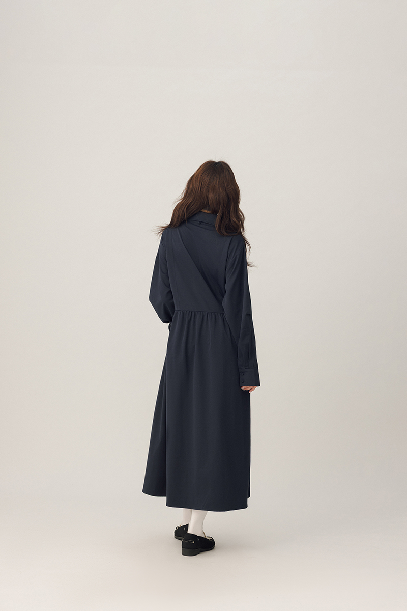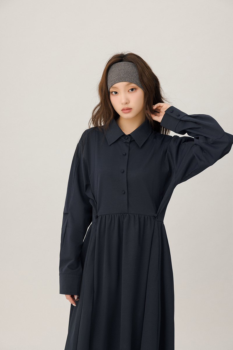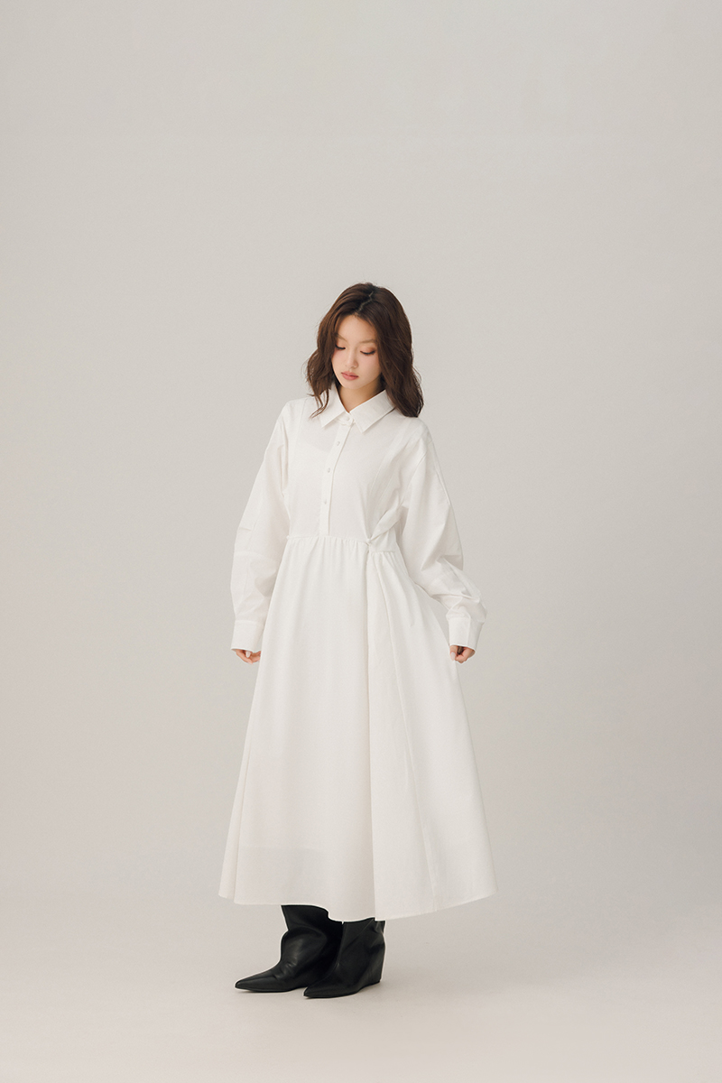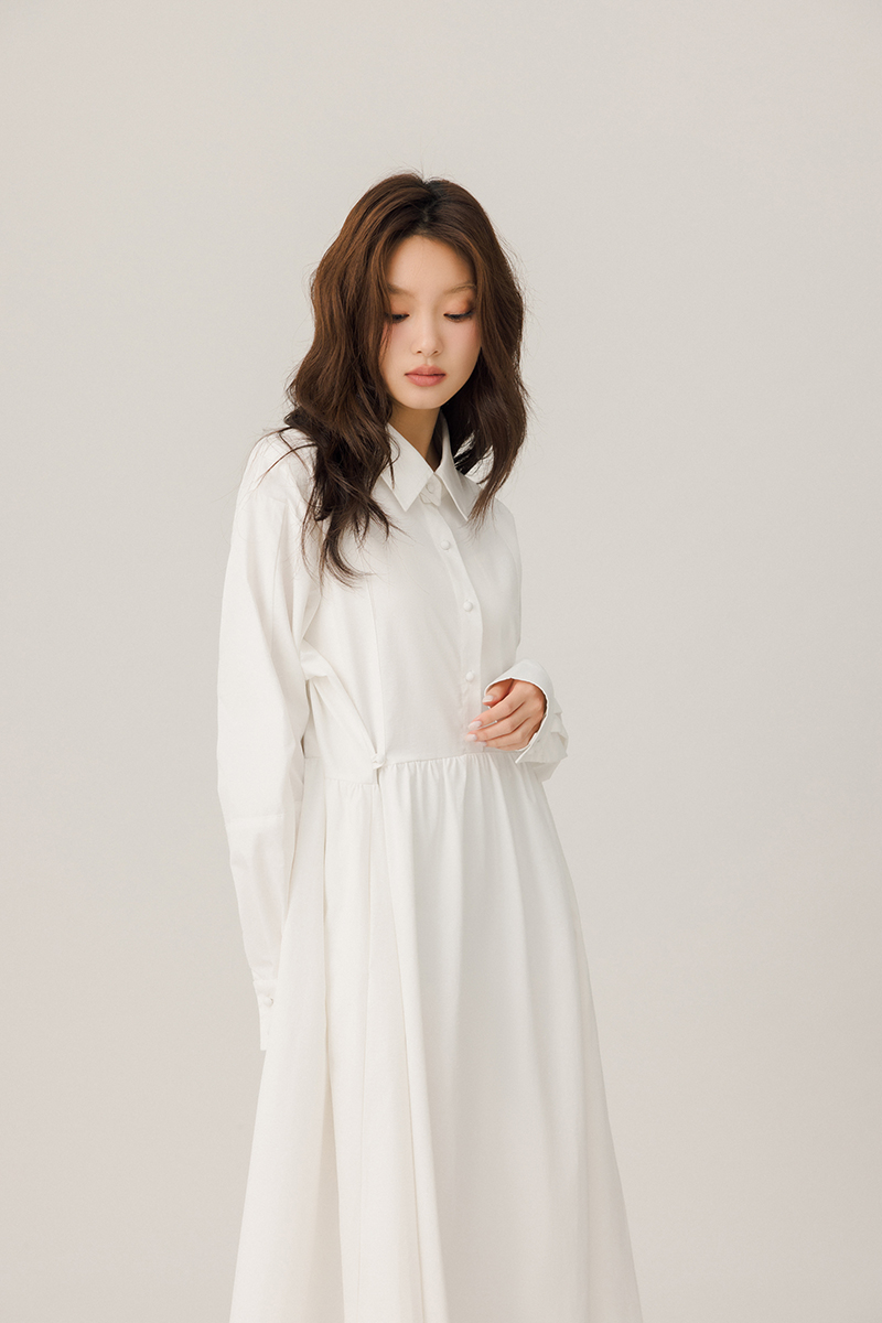 領片可拆腰打褶設計感洋裝