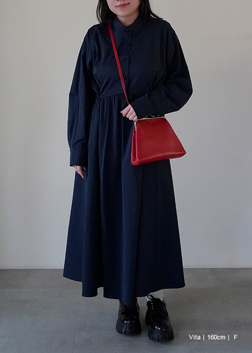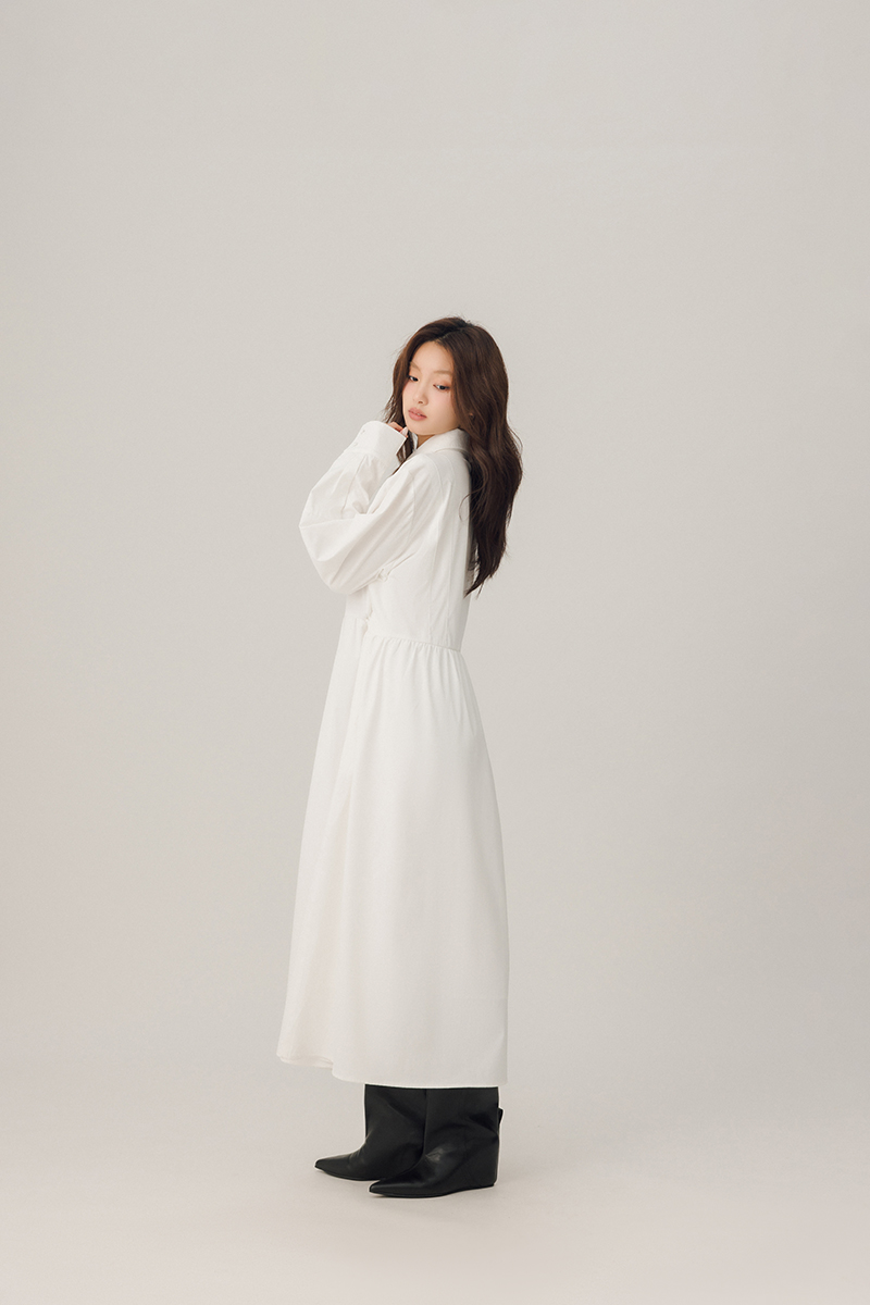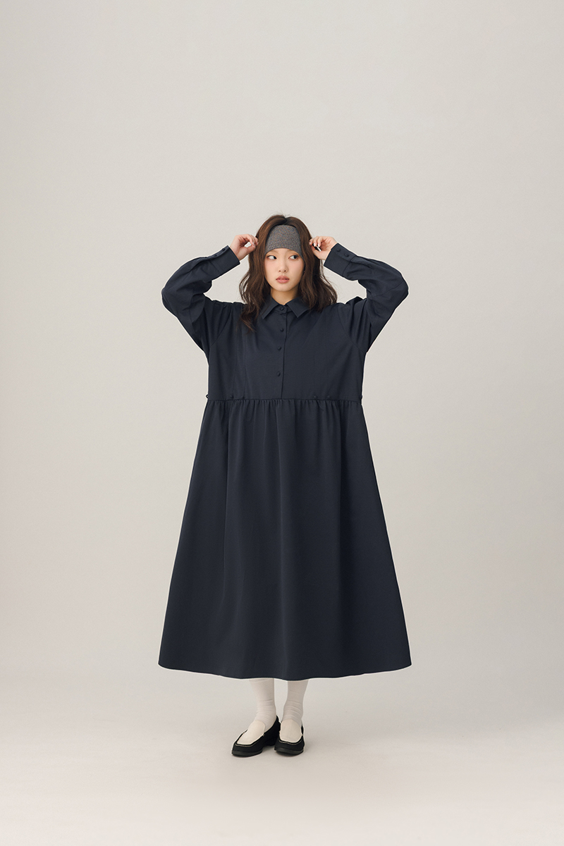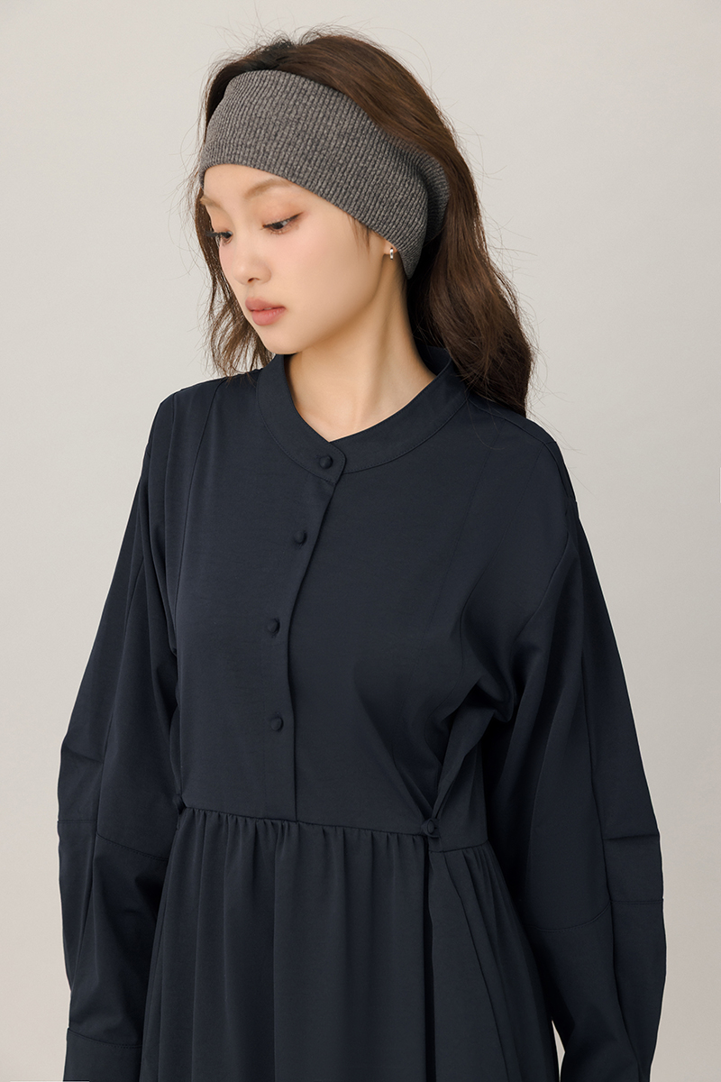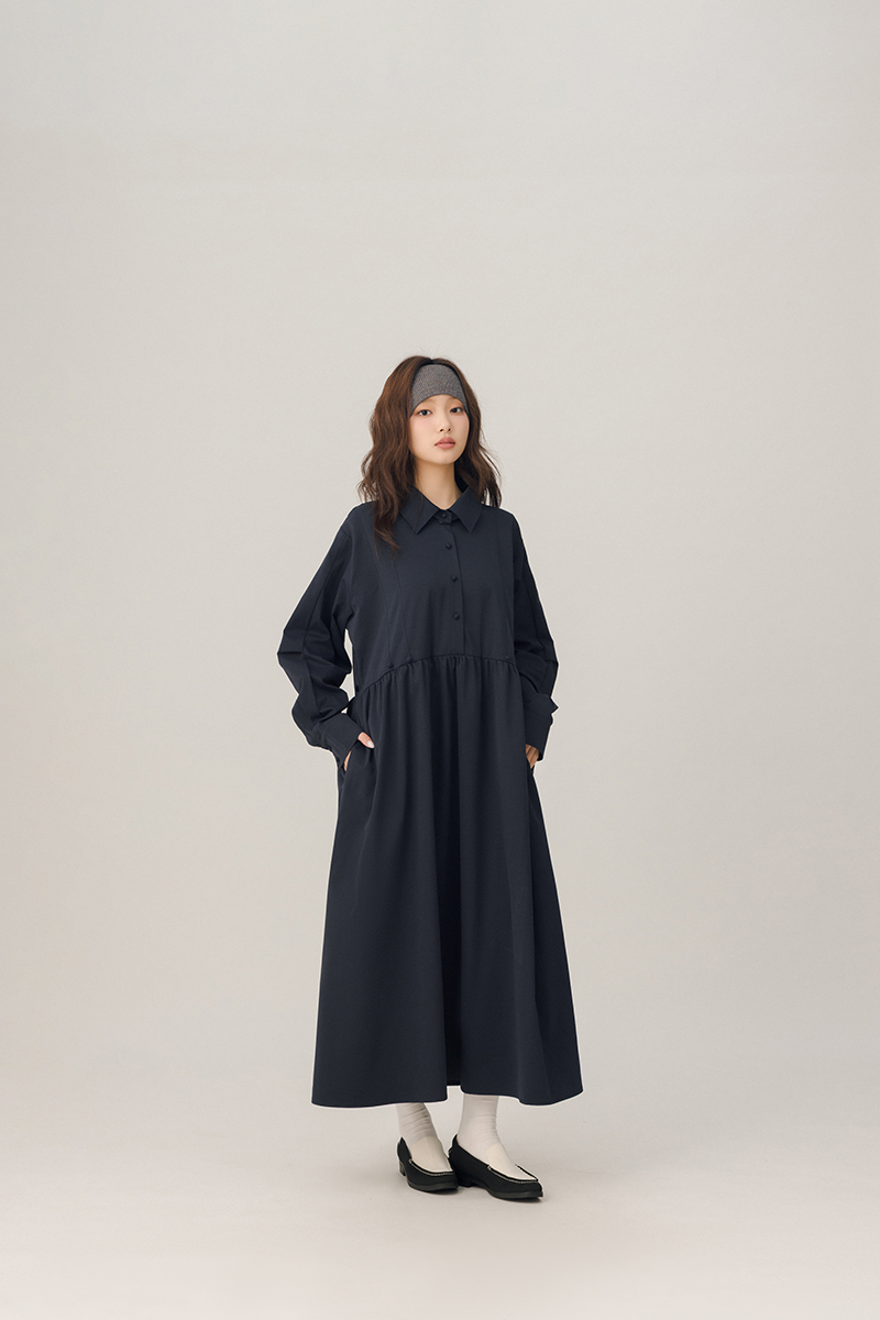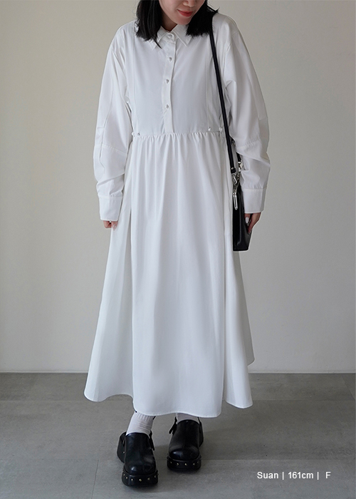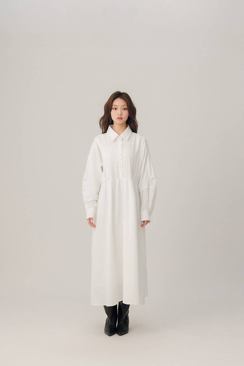 領片可拆腰打褶設計感洋裝
