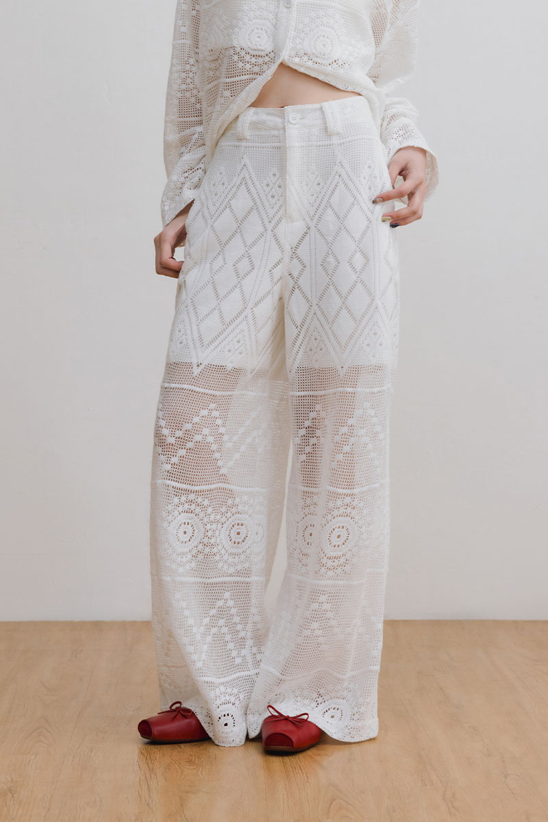 不可思議顯瘦蕾絲鉤花寬褲