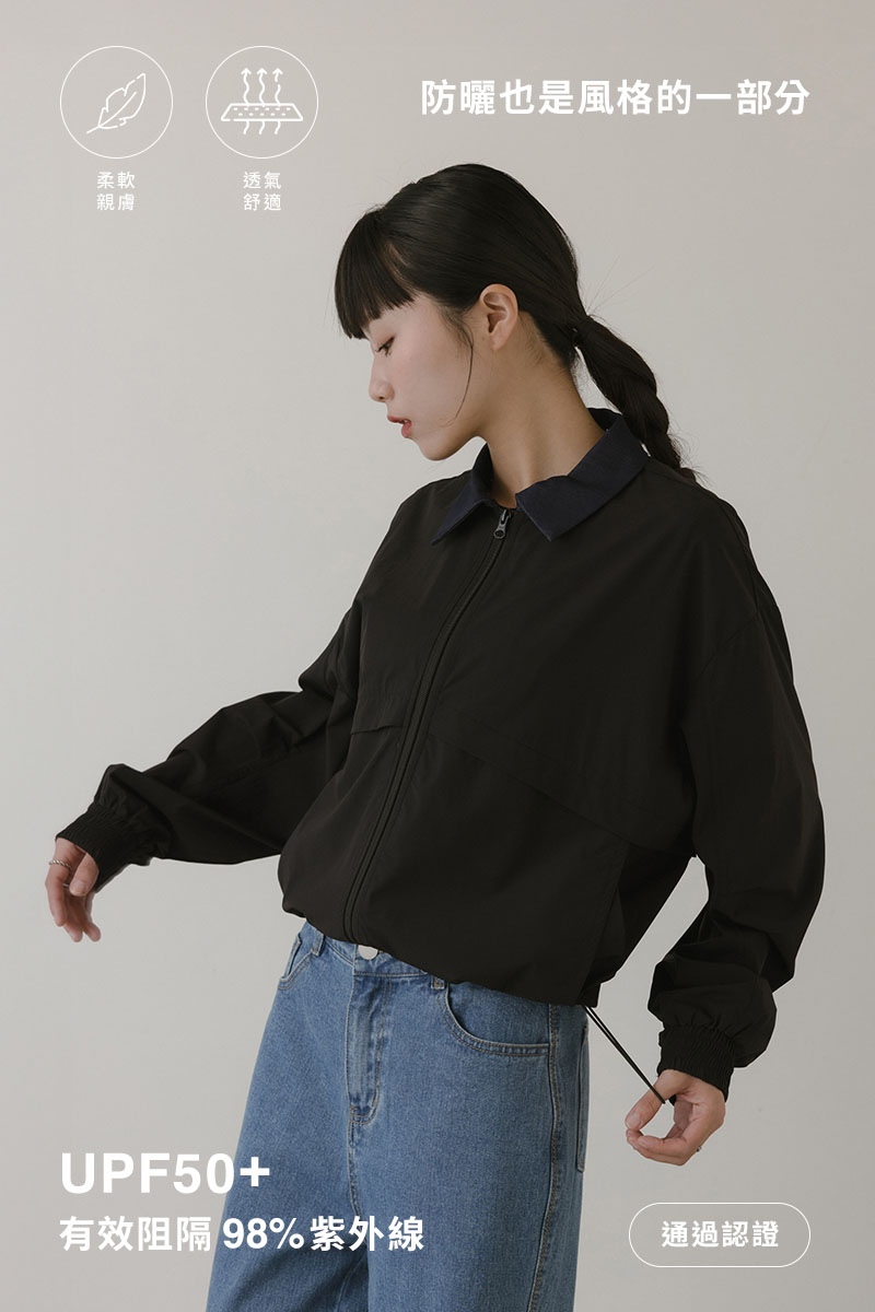 防曬抗UV撞色領片輕薄外套