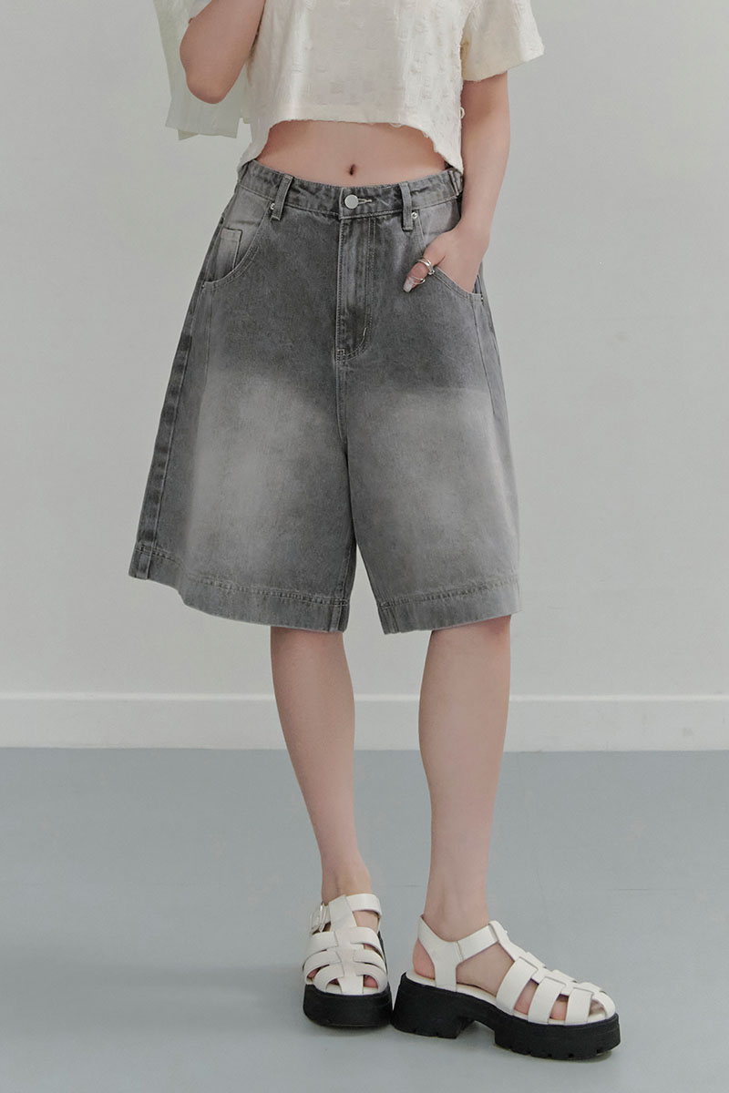 unisex 隨性調節水洗牛仔寬鬆五分褲