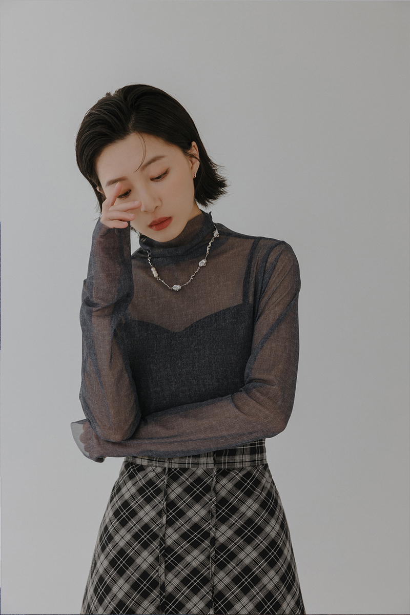 🇰🇷雜訊感雙紗透膚彈性上衣