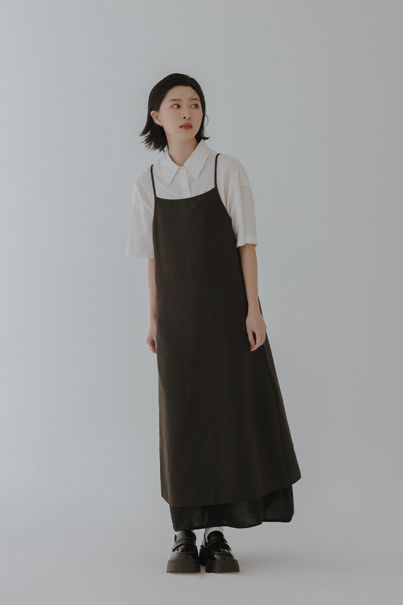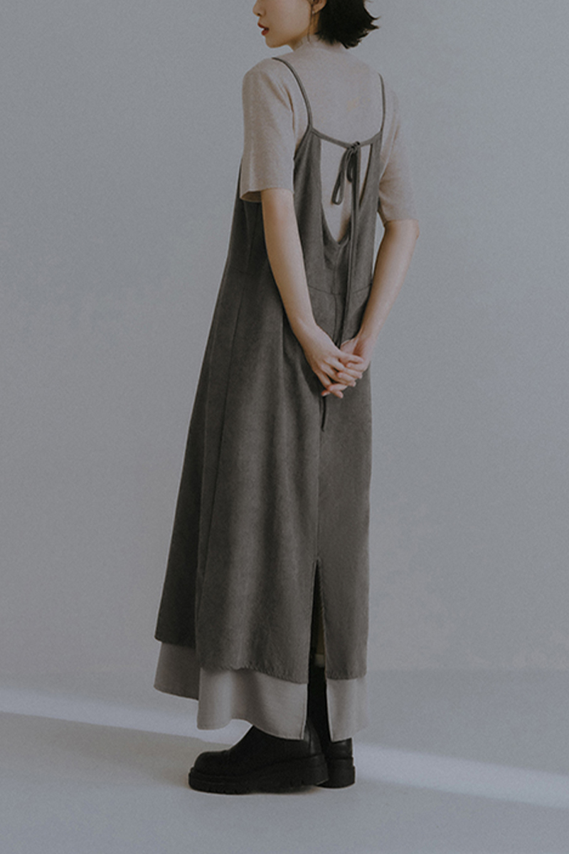 🇰🇷麂皮絨拼接層次細肩帶洋裝